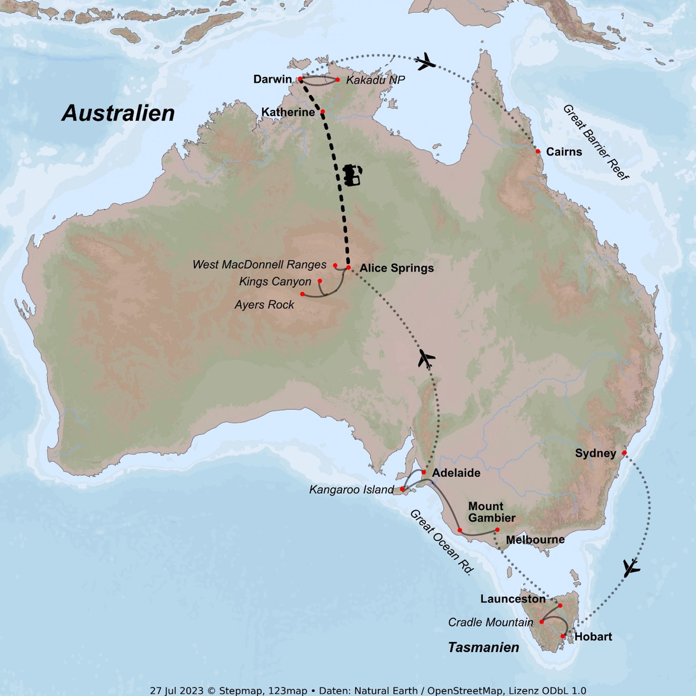 Reisen Sie bei dieser geführten, deutschsprachigen Rundreise 24 Tage durch Australien und erleben Sie viele Highlights inklusive Tasmanien und der Zugfahrt mit dem legendären Ghan.